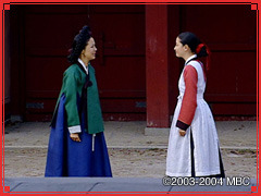 ついに互いの素性を知ったチャングムとハン最高尚宮(チェゴサングン)。