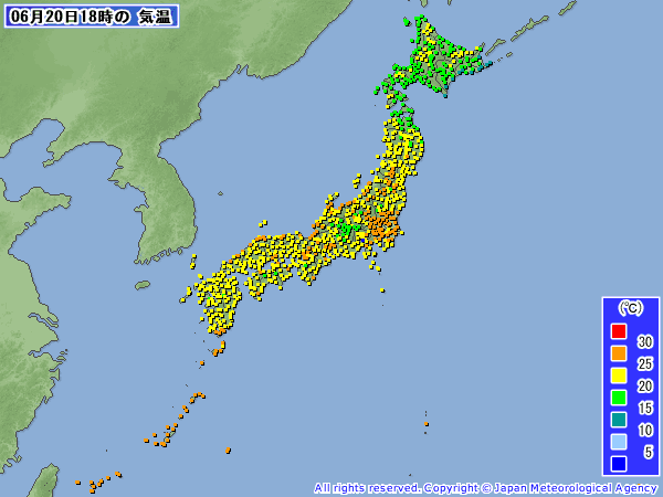 気象庁から18時のアメダスの気温の状況です(* ̄  ̄)♂【  】