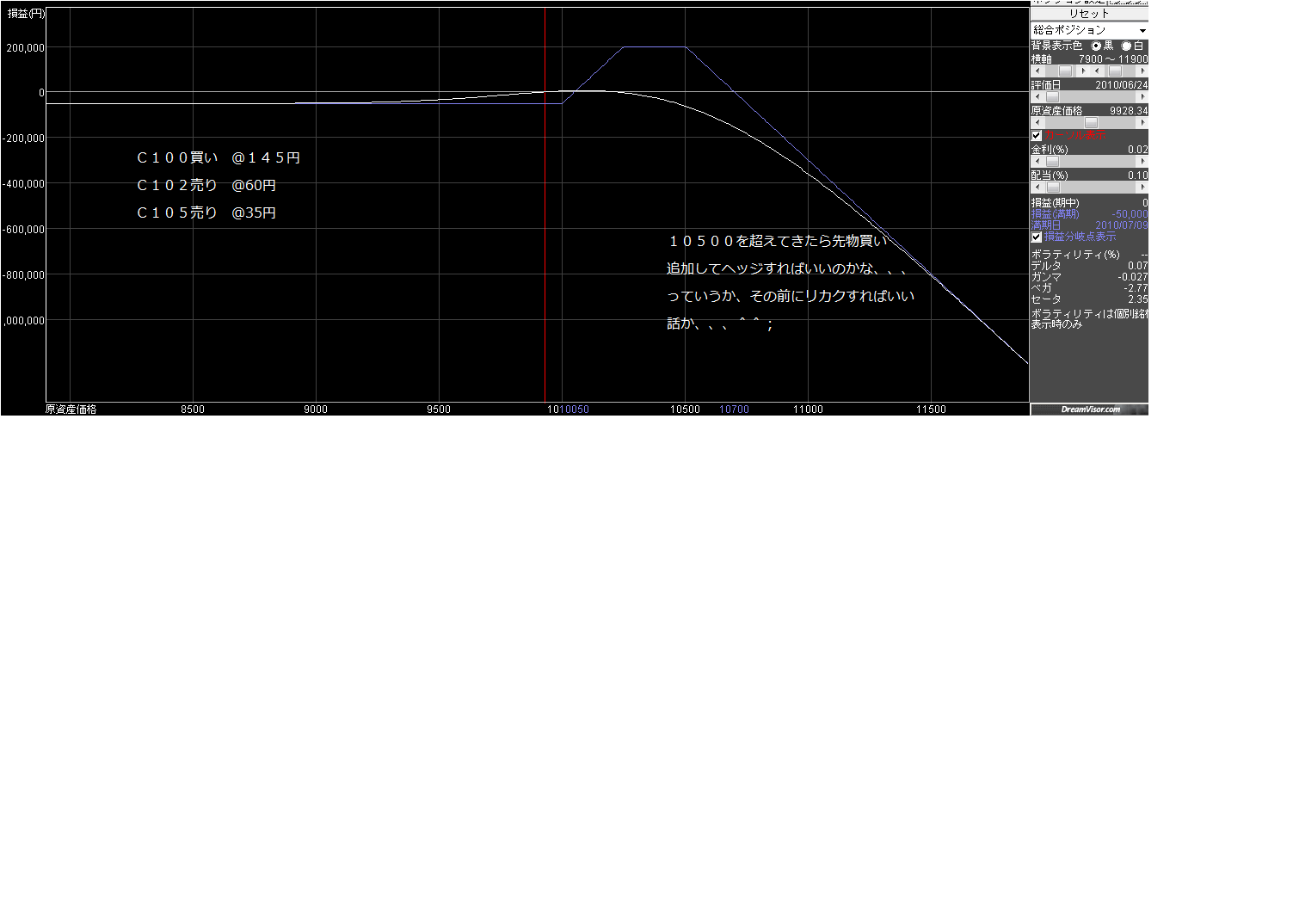 今日ロールしたC100買いーC102売りデビに、C105売りを追加して