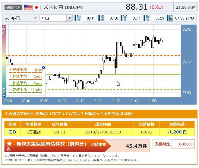 恒例の指標トレード 毎週木曜日の新規失業保険申請件数でGO~