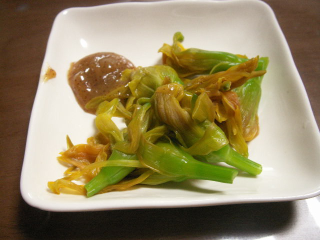 写真3:ヤブカンゾウのおひたしはカラシ味噌で食べました