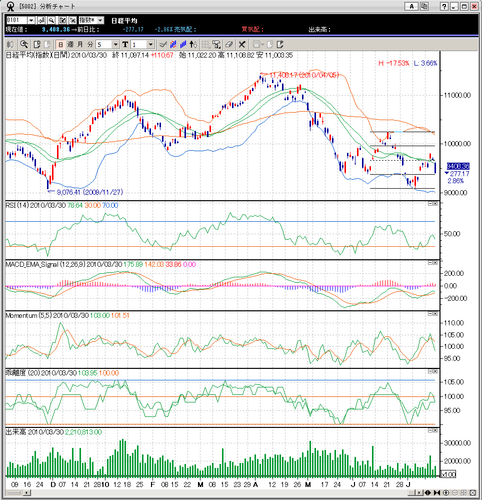 日経平均が9000円を切るかどうかがこれからのポイントになりそうですね。