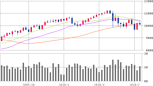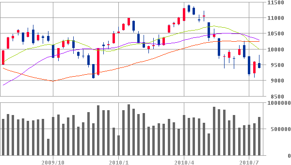 梅雨明けで毎日灼熱の猛暑日ながら、相場の方はお寒い限り。この辺で一時的な反発はあるかと見ておりまするが、長期的には辛抱、もしくは戻り高値で売り建て時期のように思いまする。