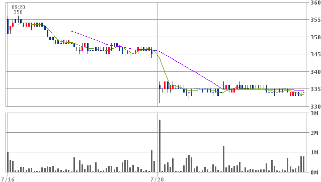 早速、LCを昨年の11月27日の安値322円を意識して325円に置き、目標値はセットせず、スイングで350円越えを目指すことにした。