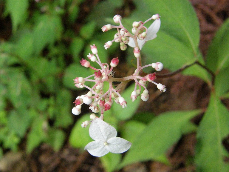 右の花は「ヤマアジサイ」の若木かも知れません。