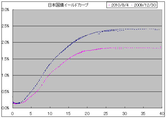 2009年末と2010/08/04現在の円イールドカーブを比較してみました。