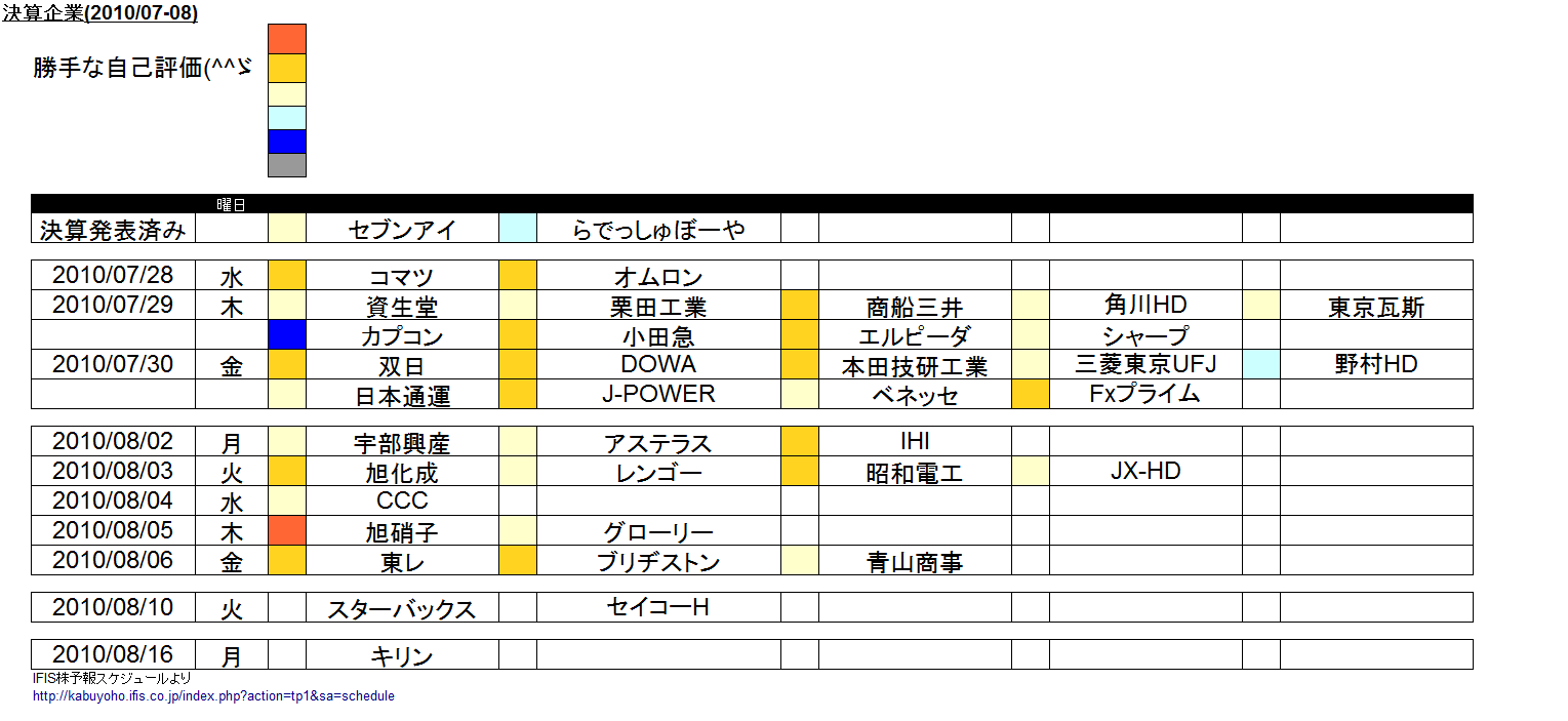 2010/08/10(火曜) (日) 日銀金融政策決定会合(9日~発表)★新月