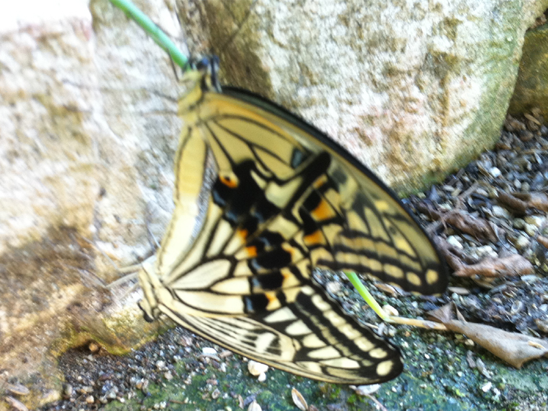 庭には、あちこちで幼虫が葉を食い荒らしています