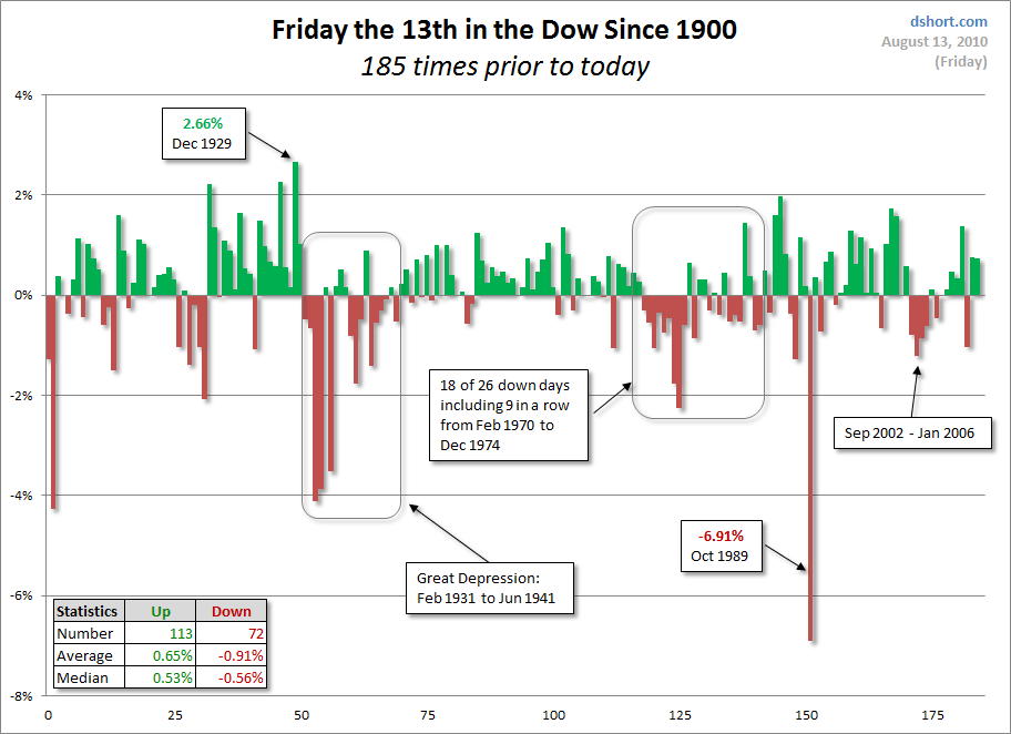 添付の図はあるブログから拝借したものだが、1900年以来のNYダウの13日の金曜日の騰落率を示したもの。