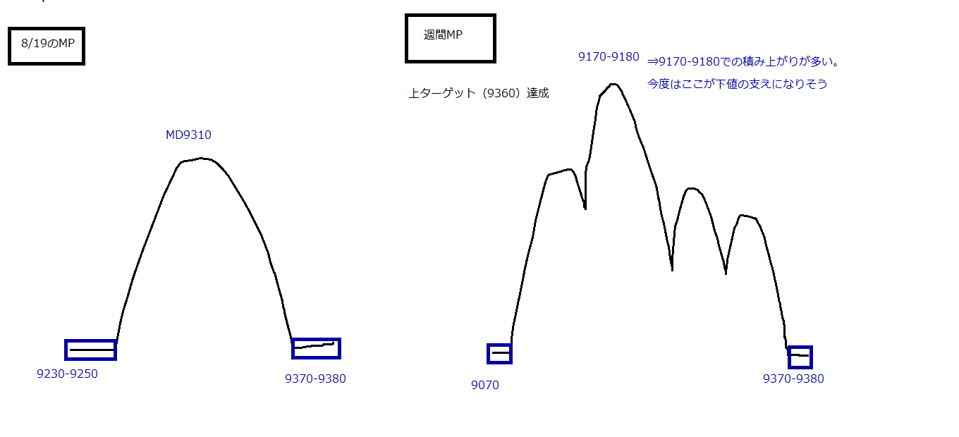 下値は今週のMPで積み上げた9170-9180、ここを下抜けると需給が悪化する。