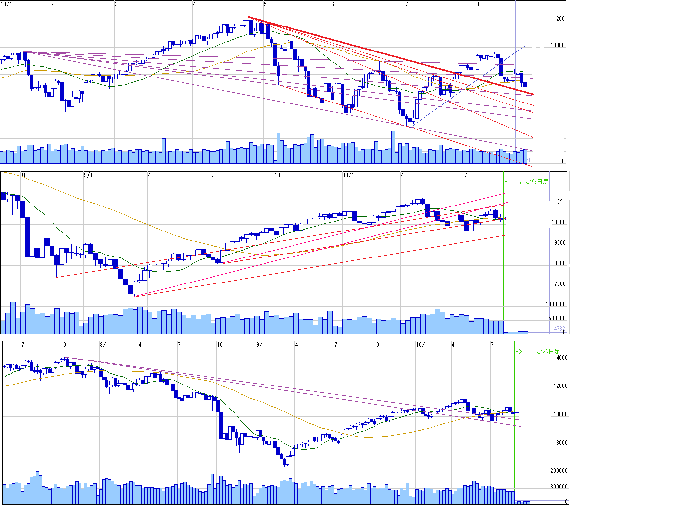 1、ダウトレンドライン、ファンライン