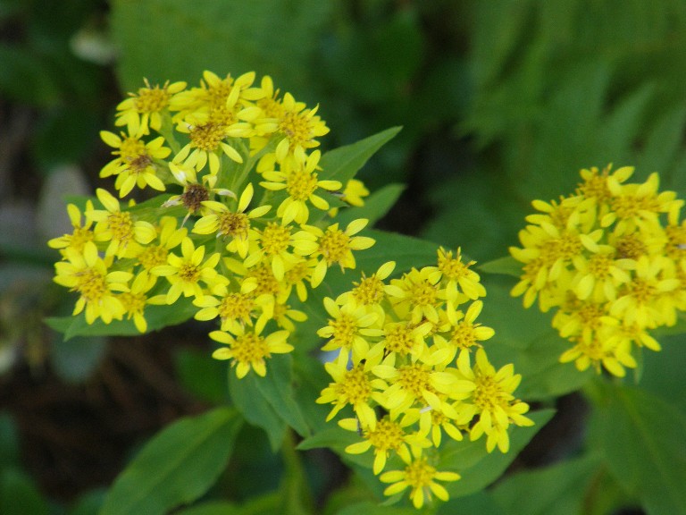 左と中がミヤマアキノキリンソウ(きく科)右がキオン(きく科)