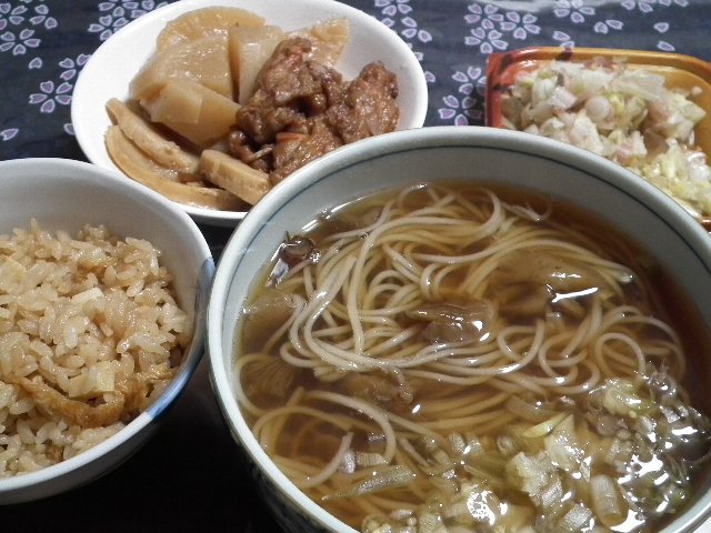 で、昨日の獲物のナラタケと茗荷とそうめんで、きのこ鍋にしました