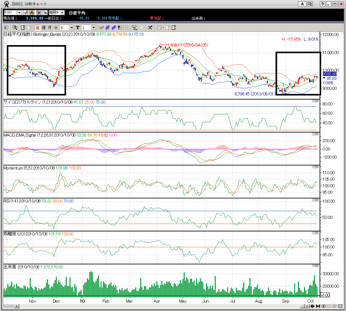 去年の10~11月のチャート11月末に日銀が出てきて9000円近辺から反発