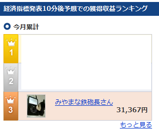 ということで「みんなの外為」で遊んでいたら3位に・・・( ̄ー ̄; 」