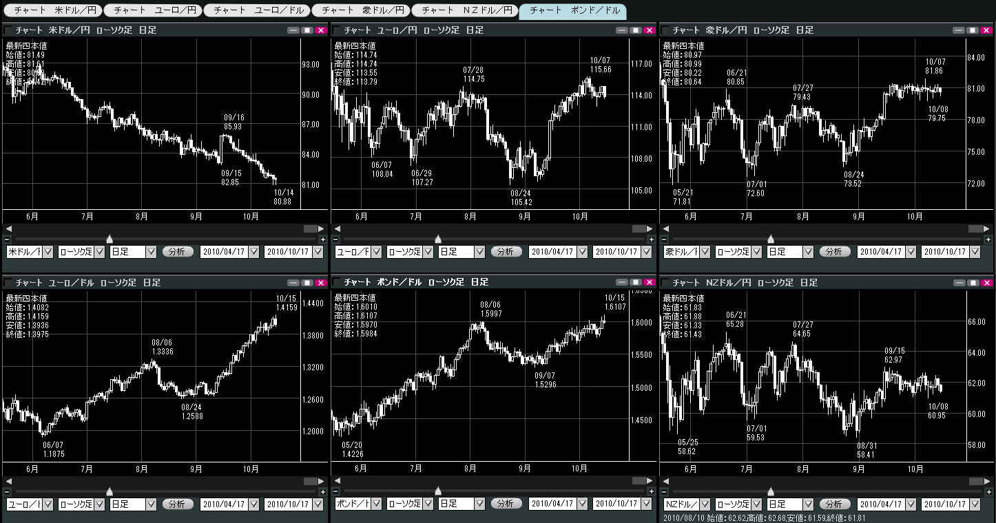>ちょっと行き過ぎた円高基調ですが、ドルが全面安と言った方が正しいでしょう