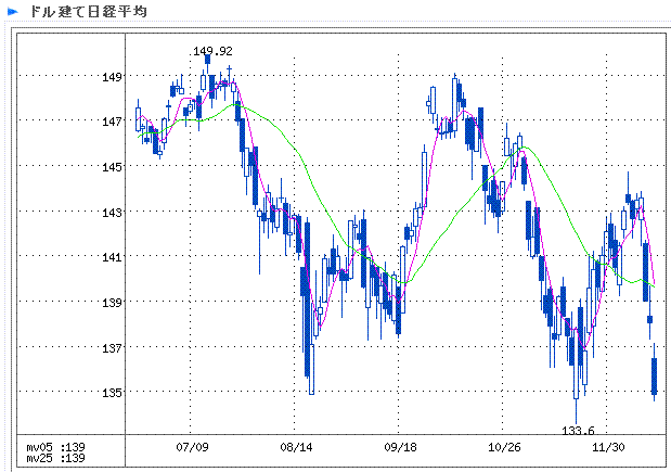 米国市場の大幅安を受けて、日経平均は前日比-100程度でスタート。前場は、円安ドル高進行を受け、米国市場の下げ幅の割にはあまり下げていませんでしたが、後場からアジア市場安やGLOBEX安が進行していたこともあり、大きく崩れていきました。日本市場も買いが薄くて売り物がでるともちこたえられないです。個別では、鉄、海運などのバリュー系、ドワンゴ、DeNA、乾汽船など、今年一相場作った銘柄が大きく売り込まれました。なんか年内はぐだぐだ相場な気がするので、私はポジション小さくして手抜きモードに入ります。