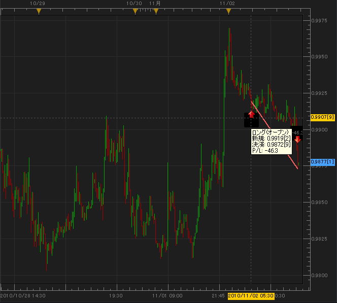USDCHF - 0.9920L→0.9872S(RRR:-0.70,利益率:-0.87%)
