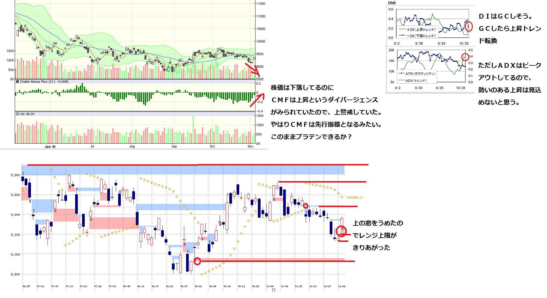 →パラボリックは買い転換、CMFをみるとプラテンできずに下落してるので天井さいん。テクニカル指標が一致せずばらばらなのでポジは傾けず