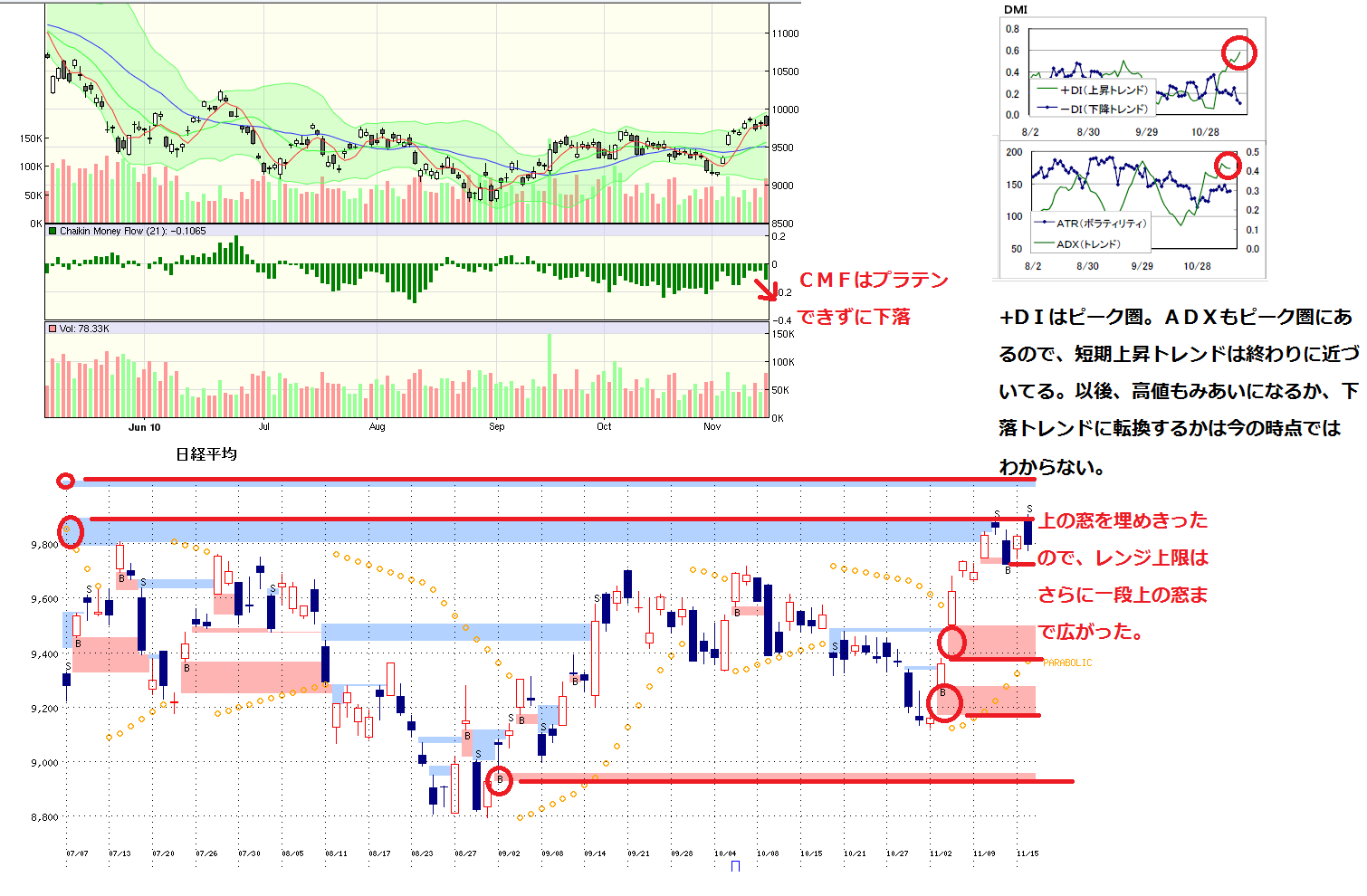 とにかく、ダウは下落トレンド入りしそう、しかし円安トレンド入りしそう、、、と、指標がばらばらなので、売るにも買うにもとってもやりにくい相場です。