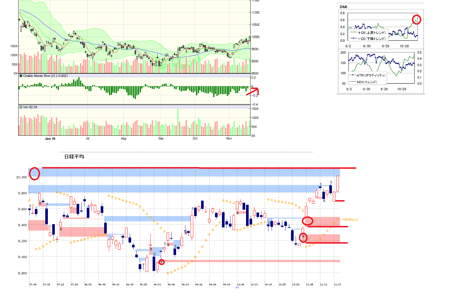 ・9940-9960のレッジをうめれば、再度9700↓への流れになると思いますが、それまでは売りは慎重に。