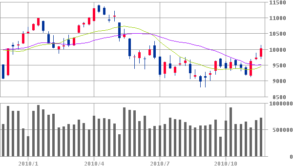 日経は週明けこそ快調な出だしだったものの、欧米が感謝祭を控えて軟調なようで、やはりまつぴょん殿の読みどおり調整模様かと存じまする。さすがの眼力かと感服でござる。是非、買い場もご伝授願えればと存じまする。(日頃日記では偉そうなことを書いていても、自分で実際に買うのは下手なもので…)