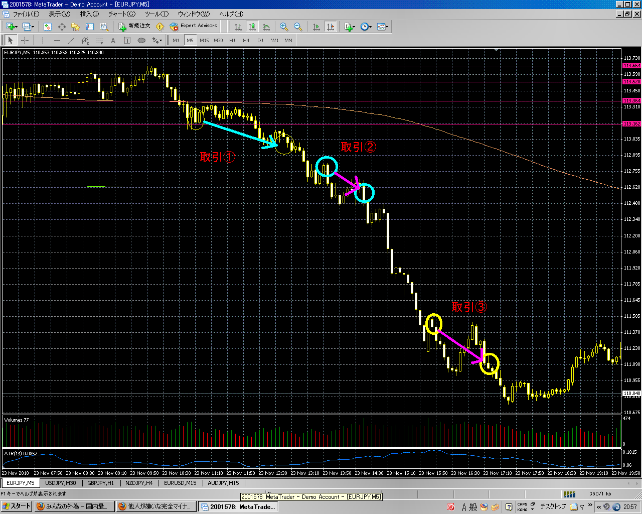 23日は計3トレード。結果的に+45pipsゲットでしたが。自分のパターンとは程遠いなというのが印象です。