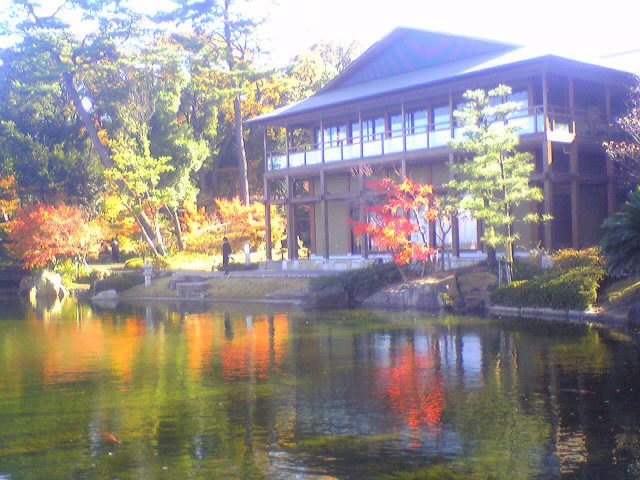 冬の徳川園は暖かいのか、綺麗な紅葉が見事です。かもも泳いで紅葉狩りです。庭園の西側は落ち葉が綺麗でした。
