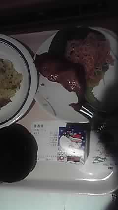 夕食が一斉に配られ、何と箱入りのケーキの御登場である。