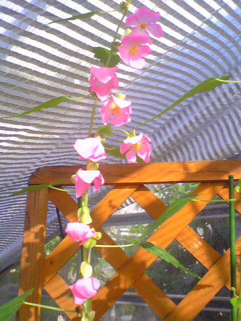 温室の中ではこんな長い花も、外ではクロガネモチがきれいにいろんでいます。
