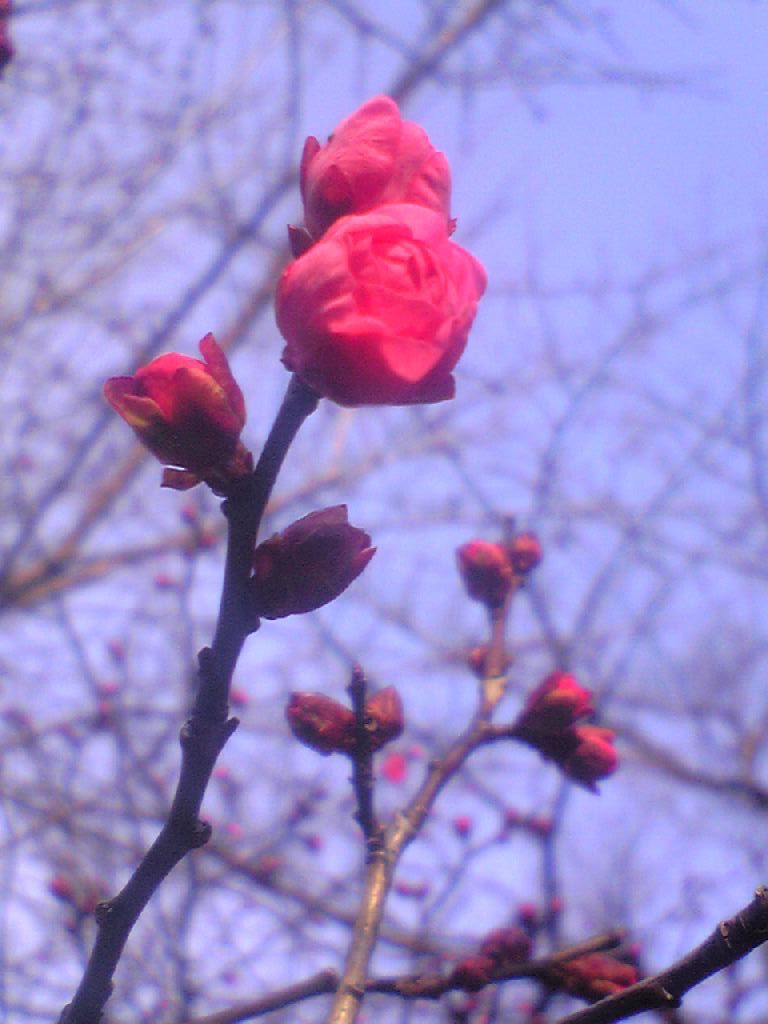 紅梅にもいろいろ種類があるようですが、早咲きの一種でしょうか。