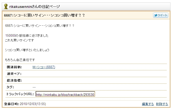 12月3日の日記でシコーに買いサインと書きましたが、本日188800をつけました