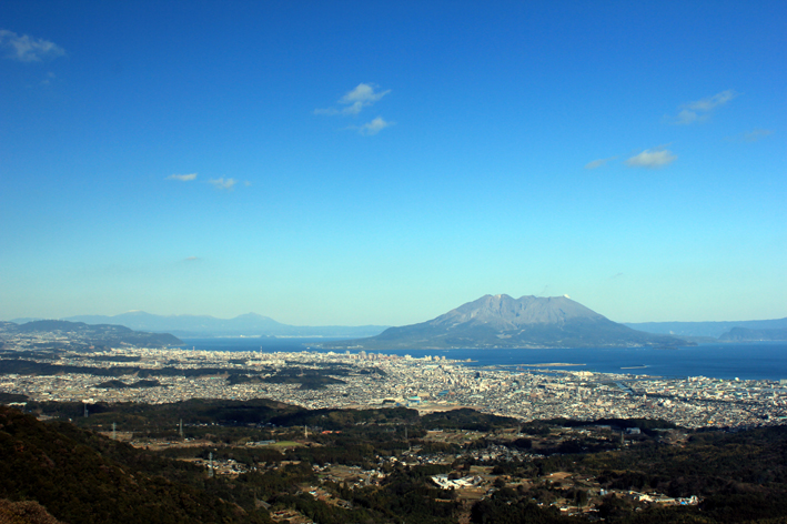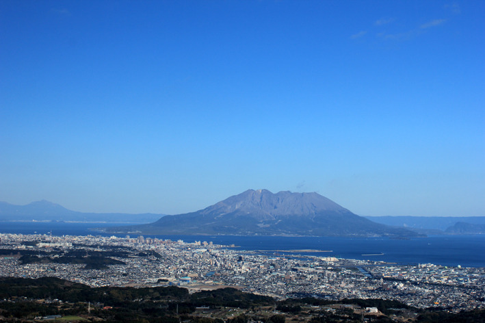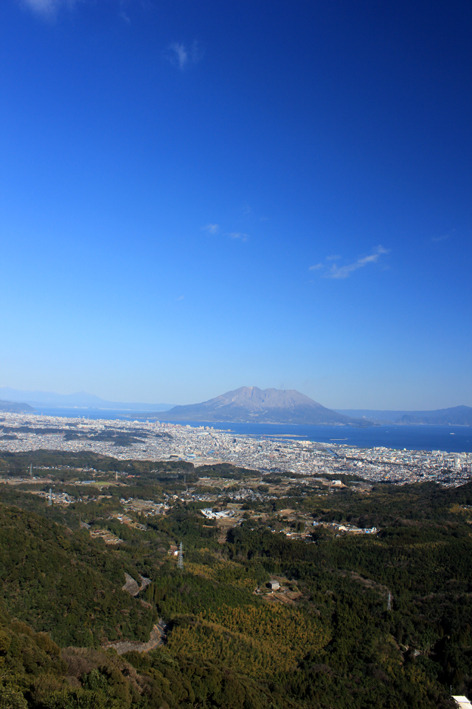 青空はいつものように素敵な濃いブルーですが、今日の桜島はちっちゃく見えます。