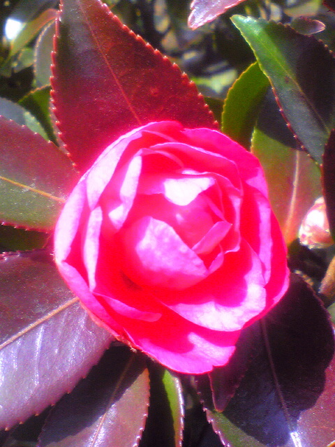 春を求めて歩きました。サザンカがこの前の大雪で紅葉しています。珍しい光景です。