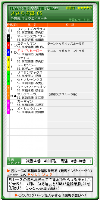今日は京都競馬場で、きさらぎ賞と東京競馬場で東京新聞杯が行われます。
