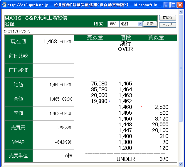 ETFの中の50銘柄の始値から計算したNAVは1455円でした。