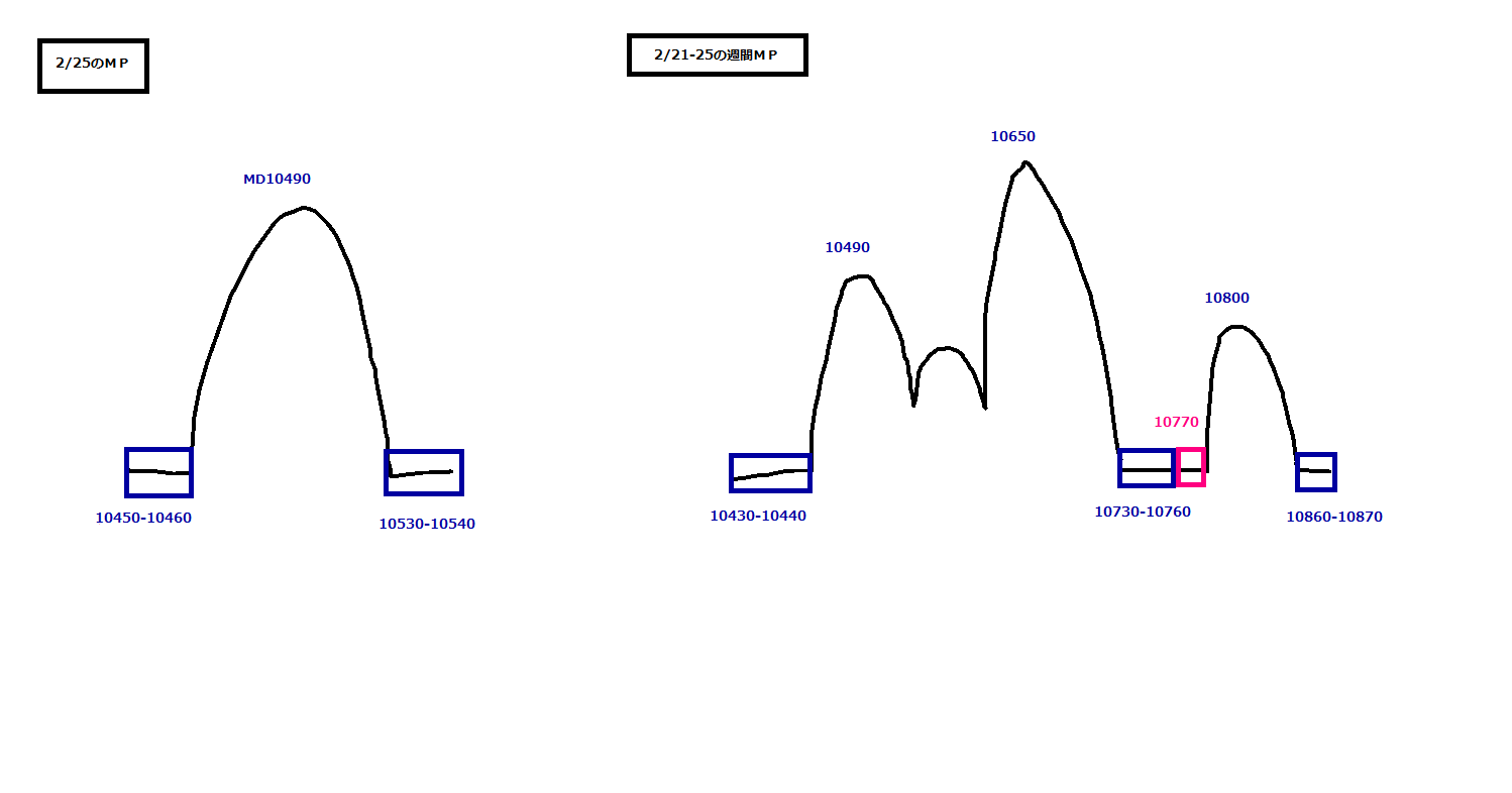 10600~10700あたりまで戻して、三尊の右肩作って下落、、、シナリオを描いてます。