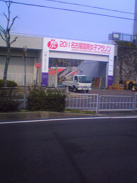 2011名古屋国際女子マラソンの幻のゲートです。人の代りに自動車が出てきました。テレビも5台ぐらい車が来ていました。瑞穂公園陸上競技場にて。走れなくて、世界選手権に選ばれなくて泣いてる選手がいたようです。次の選考会は4月17日に長野で行われる長野マラソンが有力とみられ、選考対象は今回の名古屋に出場登録していた選手だけ。