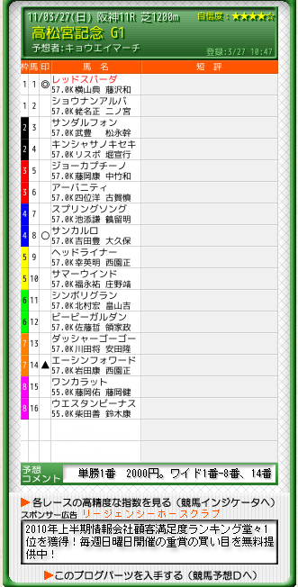 今日は阪神競馬場でスプリントGⅠ高松宮記念、皐月賞へのステップレースの毎日杯が行われます。