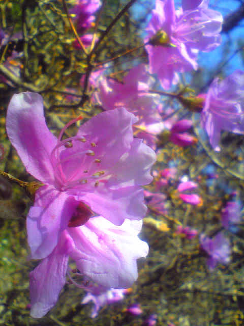 ミツバツツジ(三葉躑躅) ツツジ科 Last modified: Mar 24, 2007. photo 学名: Rhododendron dilatatum 花期:春. 関東,東海,近畿地方の山地に生える落葉低木です。 早春に,葉が出る前に紅紫色の花を咲かせます。おしべは5本。