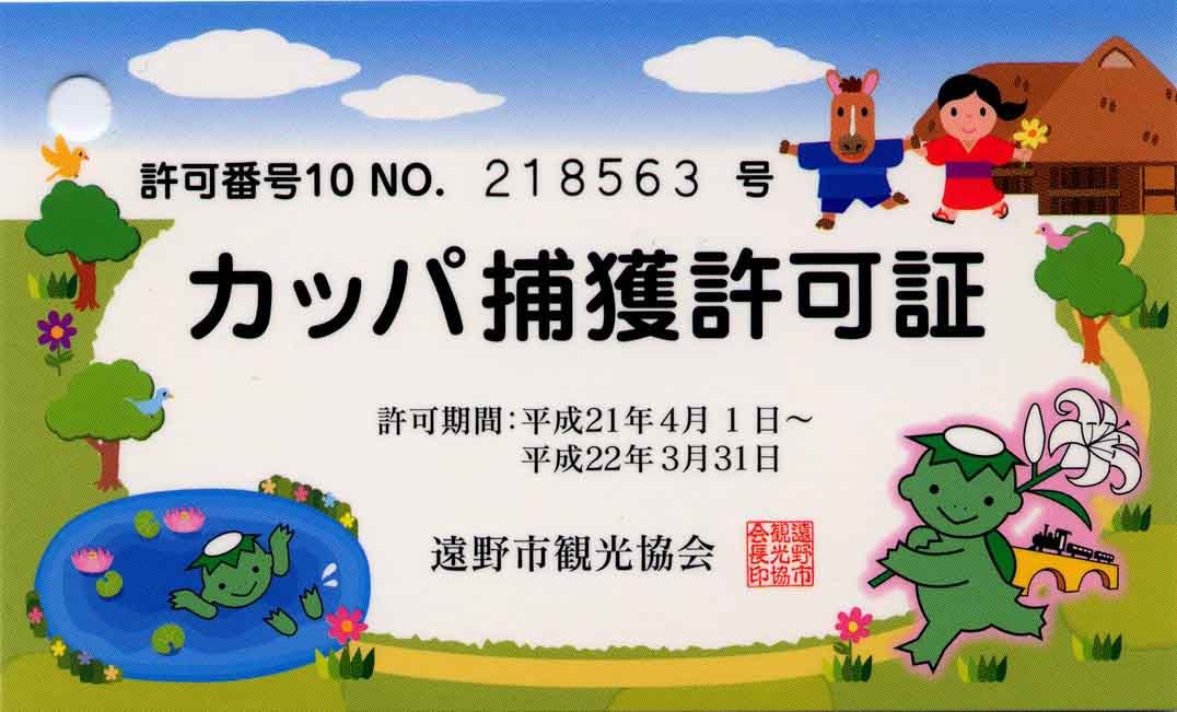 机の上の書類ボックスを片付けていたら、「かっぱ捕獲許可証」が出てきました。