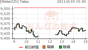 今日は昨夜のNYの国債格付下げと株安を受けての、NKが寄りつきから9500円割れで終始した。