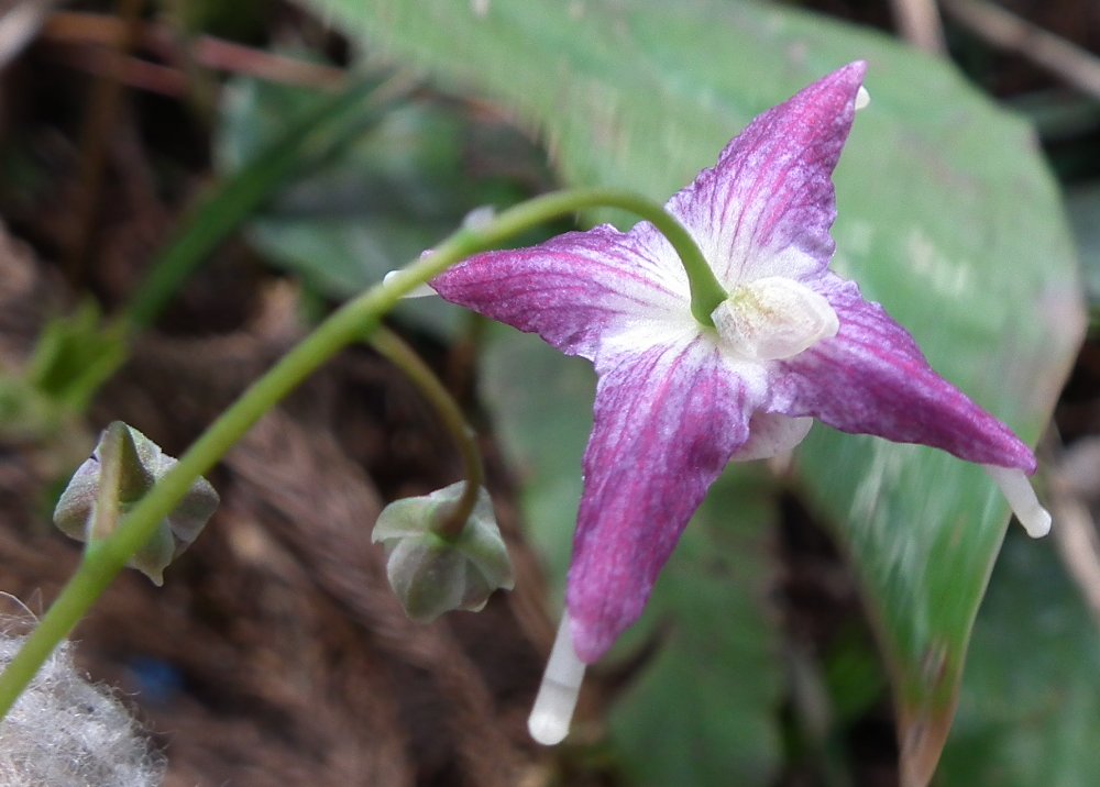 北陸の山地にあるイカリソウは、白色の花ばかりです