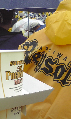 車から降りると雨が降っていたので仕方なくレイソルのポンチョを買う。