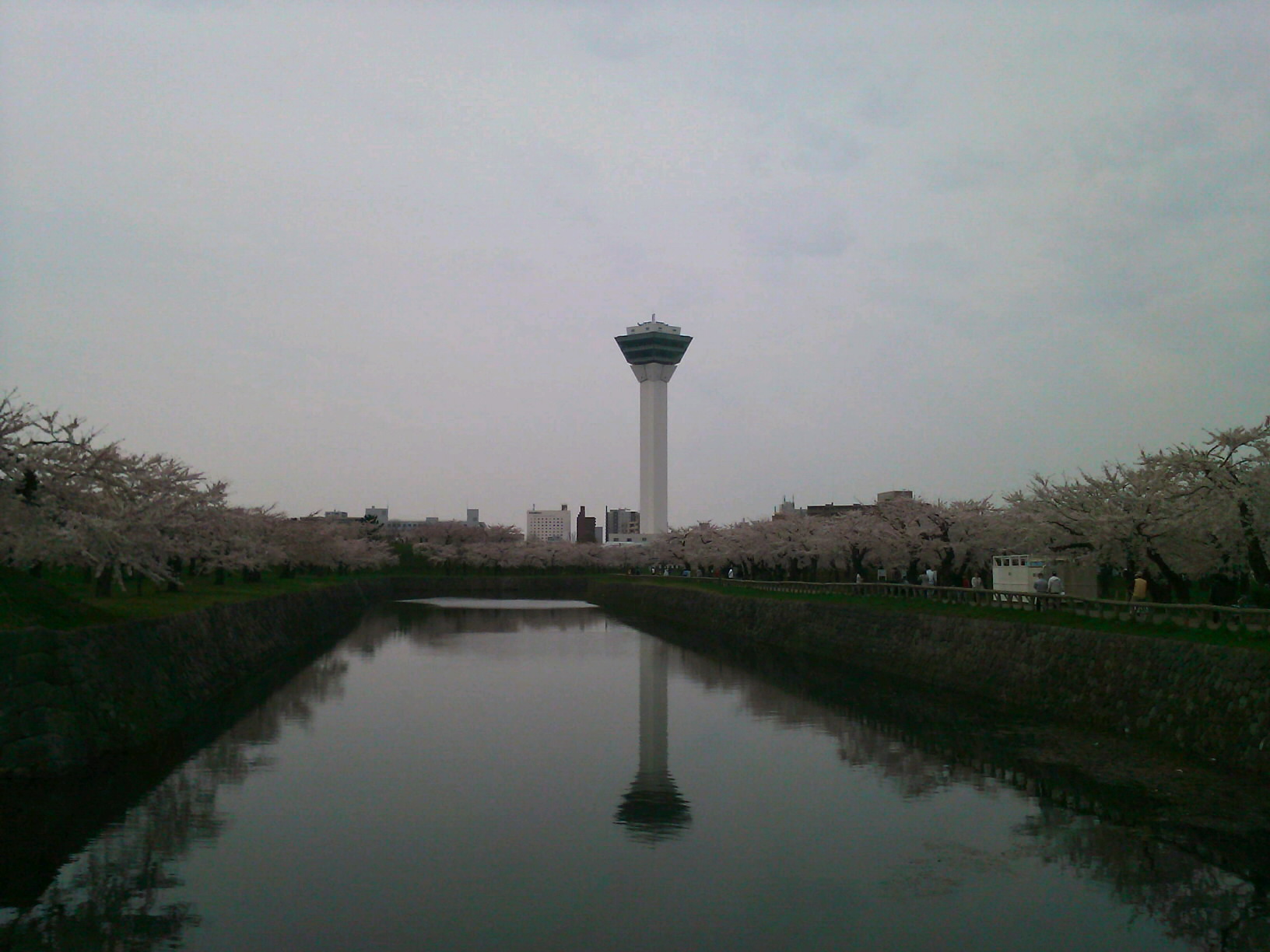函館の五稜郭公園の桜と五稜郭タワーです。