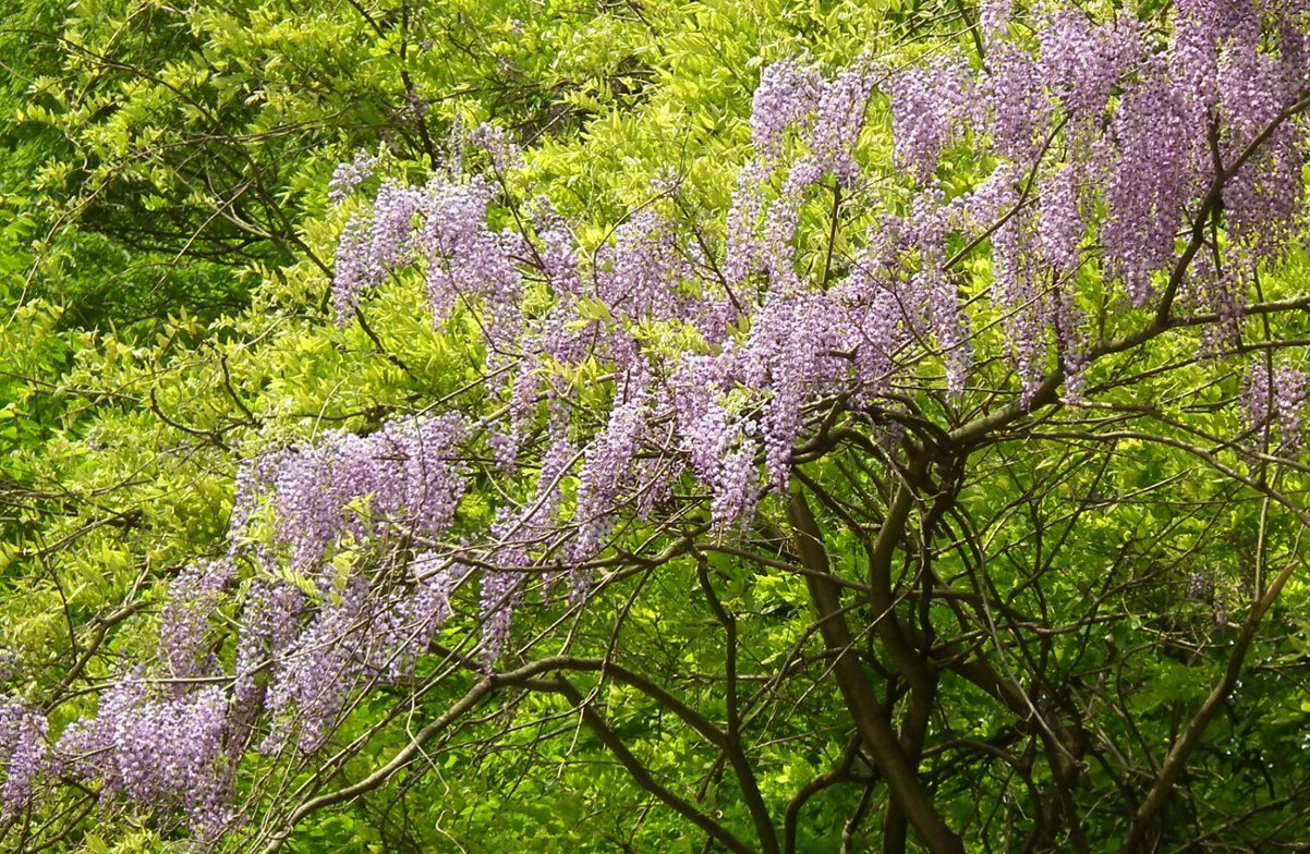 山の藤は杉や松の木に絡まって上へ上へと成長するので花が咲いても、「 おお!見事だ!」 なんて見とれることはありません