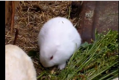 餌を食べるのに耳が無い分だけ障害物が無いので他のウサギに踏み付けられています。