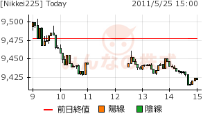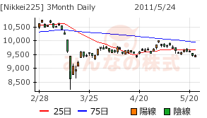 となると、5/12の9800円割れから下降トレンドと見なせる。よって、週末にかけて9300円~9500円のレンジに収まるかどうかで、トレンド継続かどうか判断できそう。