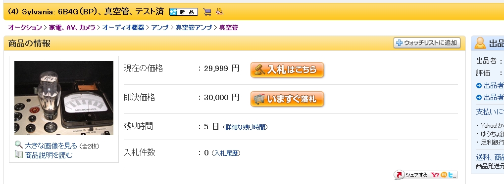 出品価格が29999円で、即決価格が 30000円です