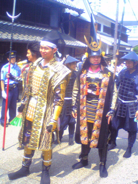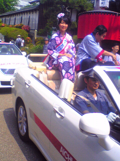 有松絞りまつりに名古屋城武将隊の家康さんからご招待を受けて、有松に来ました。普段いつも見慣れた町並みがまるで別の町の様に活気にみなぎる時です。河村市長もパレードに中日フォトメイツ、有松の絞り小町のみなさんと参加。減税がんばれといったらこちらを向いてにっこり。自転車を有松のイオンにおいてすごい人ごみに合流です。からくりの山車も展示され、明日は練り歩くみたいです。途中、絞り名人のみなさん達による絞りの実演もありました。